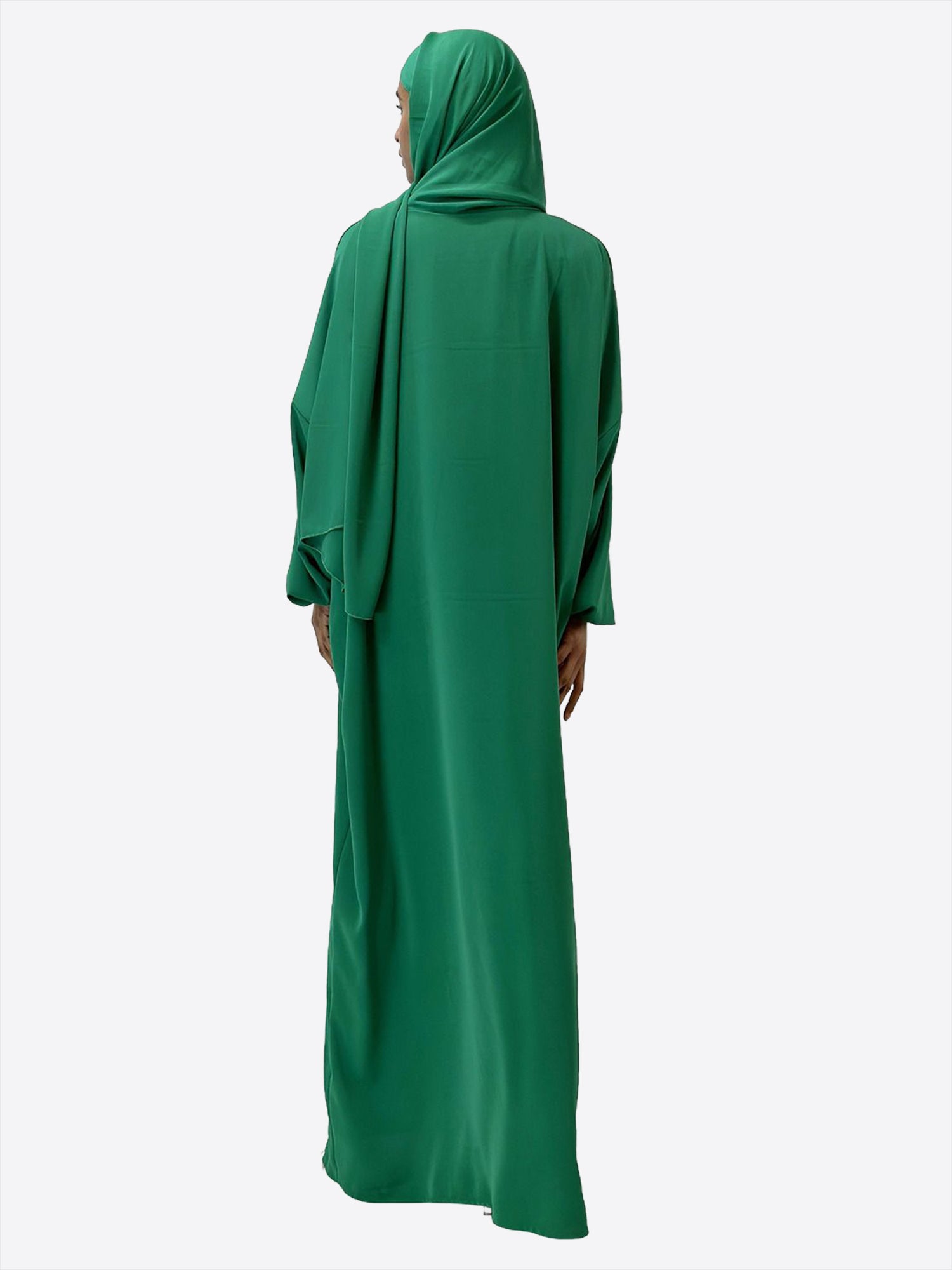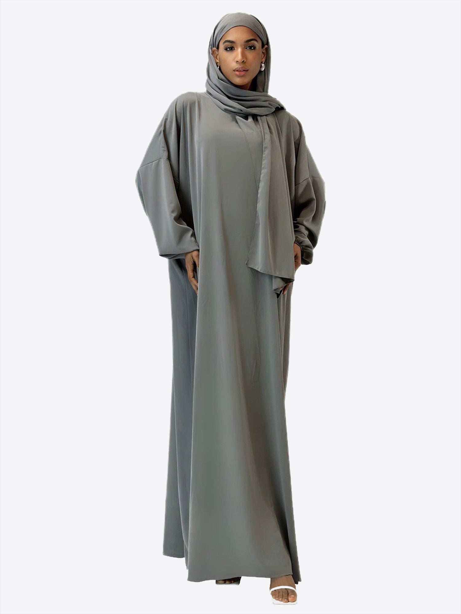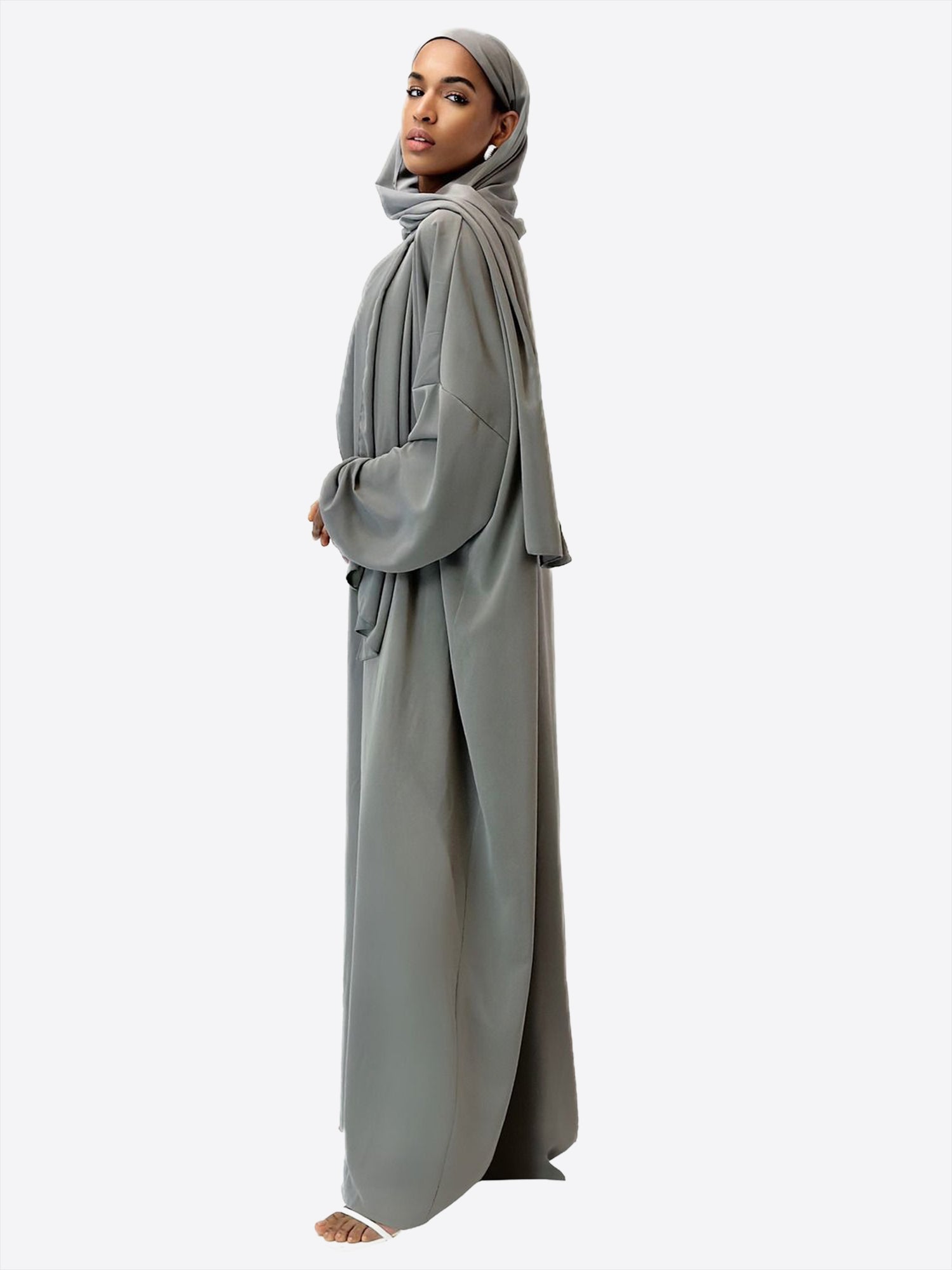 Das wahre Highlight dieser Abaya ist das atemberaubende Kopftuch, kunstvoll verziert mit goldenen Akzenten an den Nähten. Diese subtilen Details verleihen Ihrem Look einen Hauch von Luxus und betonen Ihre Eleganz auf raffinierte Weise. Das Kopftuch komplettiert nicht nur das harmonische Design, sondern ist auch ein Statement für modische Raffinesse.