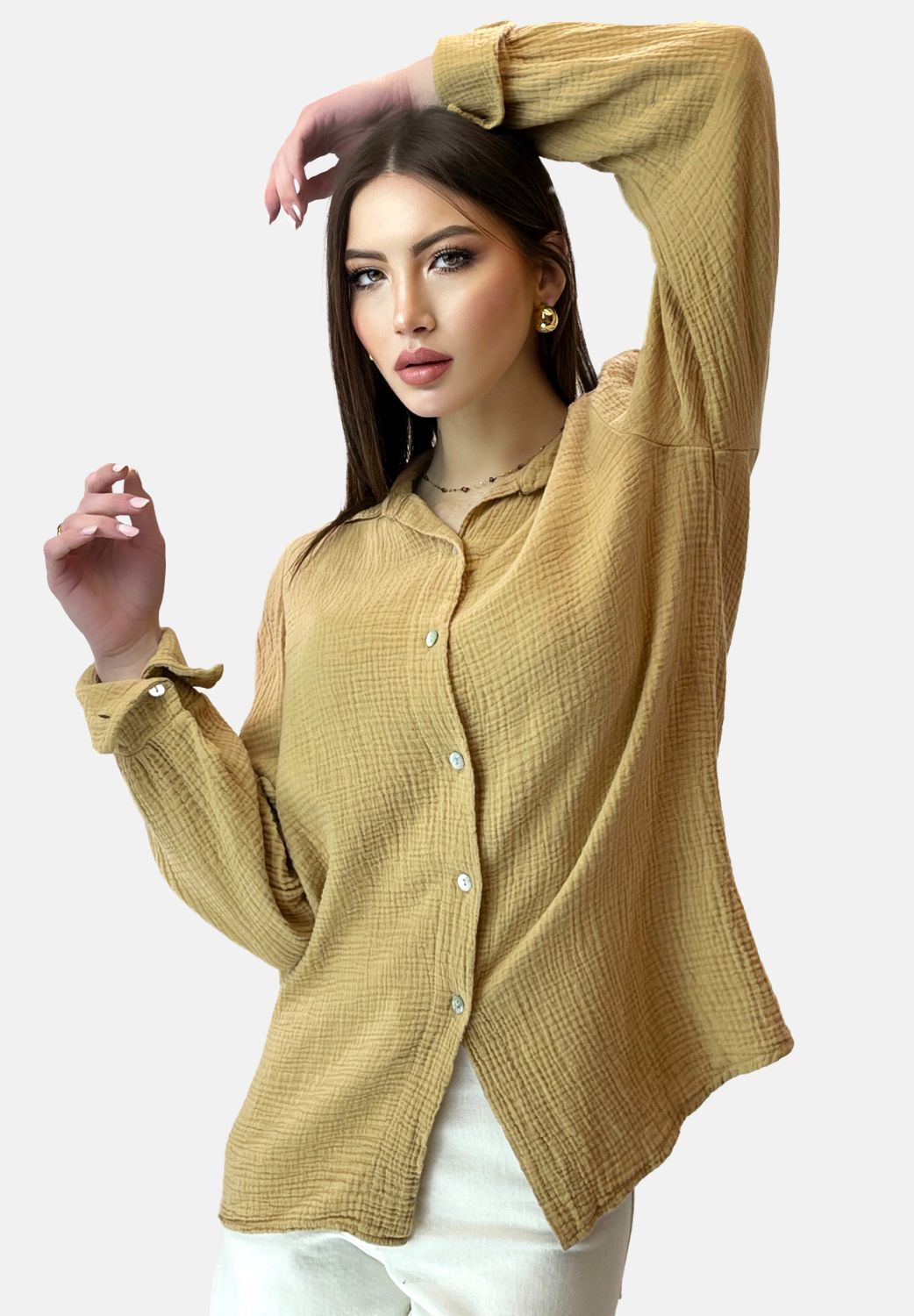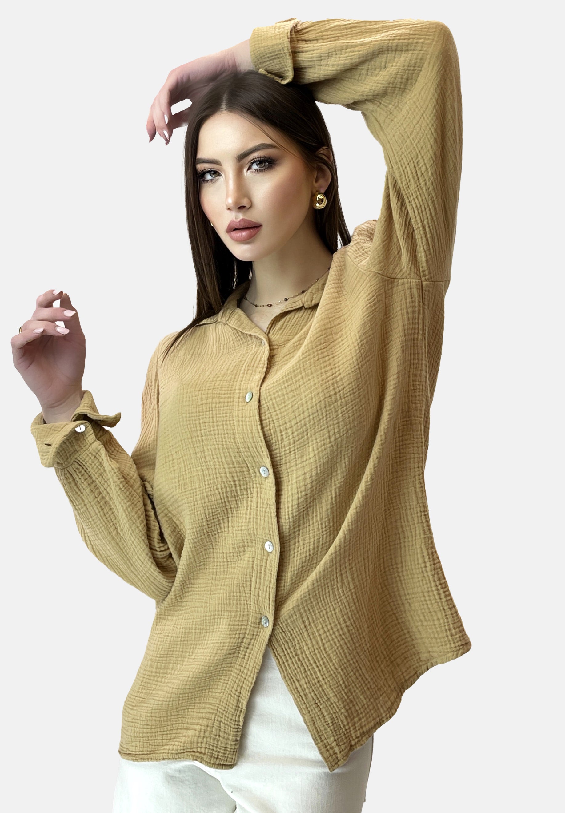 Erhältlich in einer Vielzahl von Farben, lässt sich unser Damenoberteil mühelos zu Jeans, Röcken oder Kleidern kombinieren und ergänzt Ihre Garderobe mit zeitloser Eleganz. Investieren Sie in Qualität und Stil mit unserem eleganten Damenoberteil, das Ihnen viele Saisons lang Freude bereiten wird. Bestellen Sie noch heute und erleben Sie den Luxus von Komfort und Eleganz in einem Kleidungsstück.