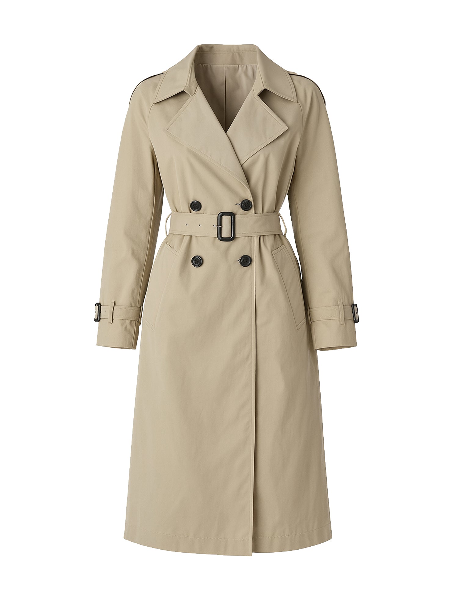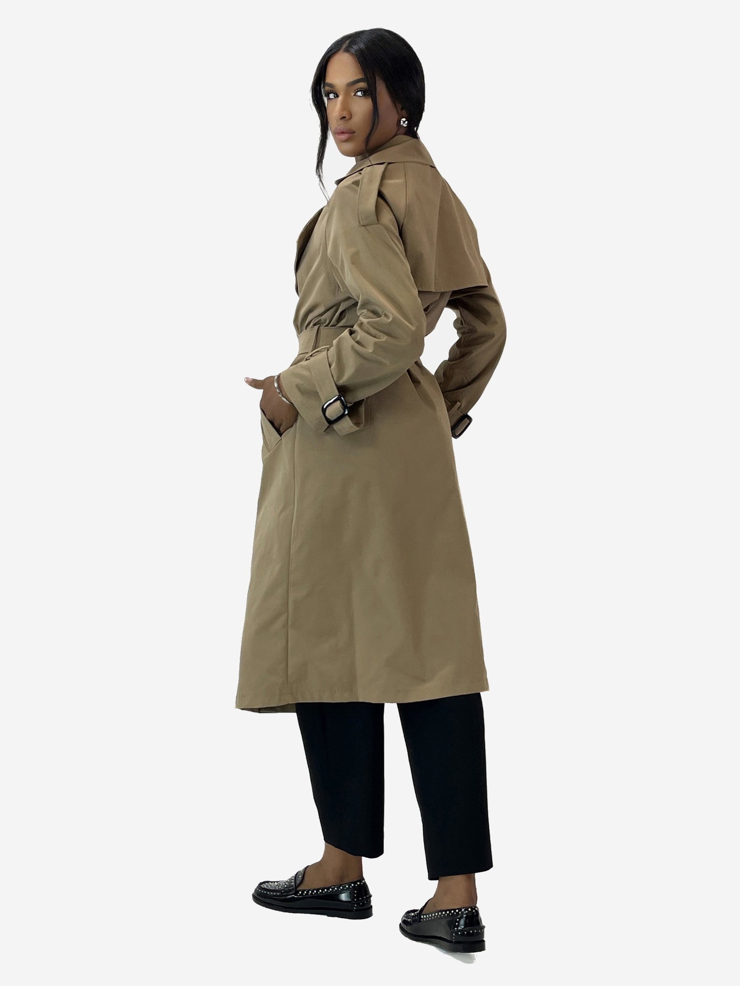 Zeitloses Design: Der klassische Trenchcoat-Schnitt ist eine Hommage an zeitlose Eleganz. Mit markanten Details wie Schulterklappen, Gürtel, Knöpfen und charmantem Reverskragen verleiht dieser Mantel Ihnen einen unvergleichlich raffinierten Look. Gleichzeitig ist er vielseitig genug, um sowohl zu formellen Anlässen als auch im Alltag getragen zu werden.